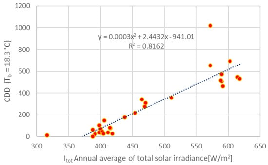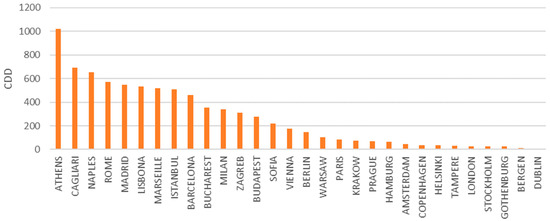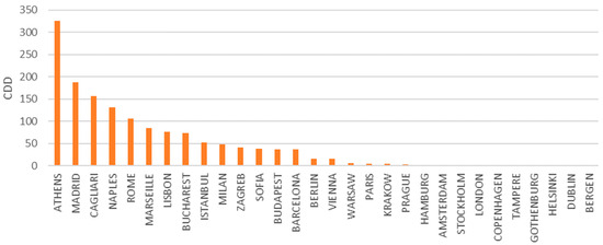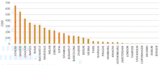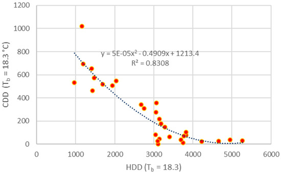 - CDDs with reference to the mean temperature, considering a Tb of 18.3 °C (ASHRAE approach).