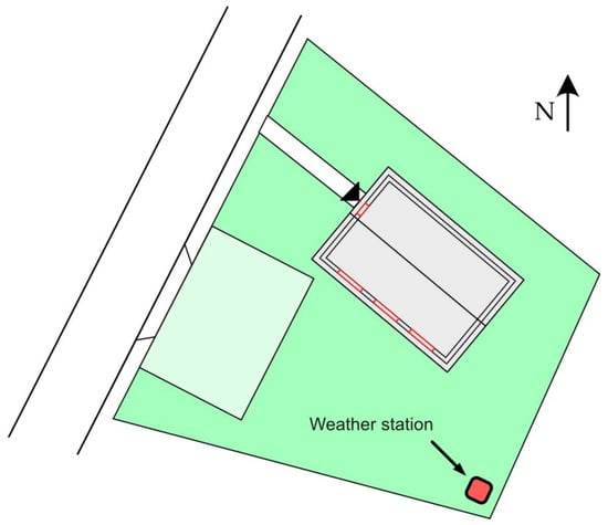A meteorological station was located on the plot where the building under study is located (Figure 3). It recorded the following climate parameters: air temperature, relative humidity, total and diffused radiation, and wind speed and direction.