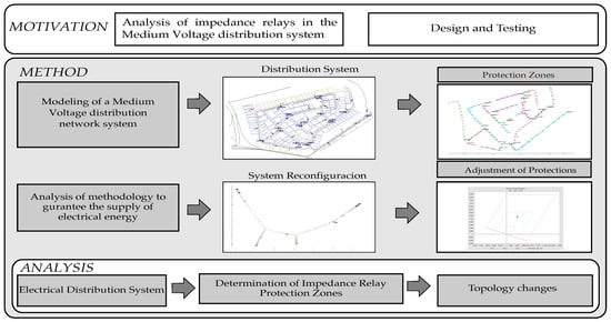 The methodology applied to the electrical network necessitates the presence of circuit breakers for the corresponding tripping actions. The more elements the system includes, the more efficient and protected the circuit becomes. Therefore, the primary objective is to strategically locate impedance relays within the distribution system. This study focused on a three-phase electrical distribution network system; however, the configuration of single-phase systems must be considered for future research.