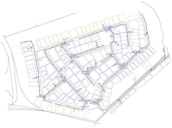 Georeferenced area created with QGIS, including system nodes in an actual urban distribution network.
