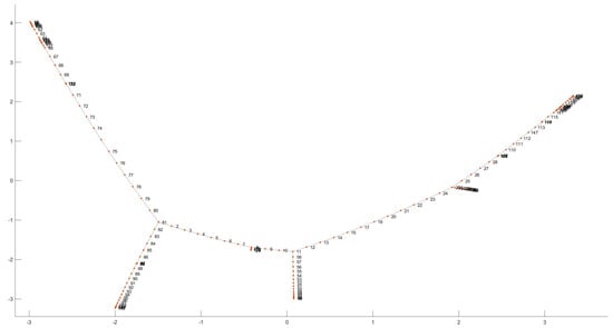 To standardize the data, the Universal Transverse Mercator (UTM) format was used, scaling the data between 0 and 1, as specified in Algorithm 1. After defining the new normalized data, the network was created with all nodes to construct the electrical distribution system. The Manhattan criterion was applied to determine the distances between nodes, and the Kruskal theorem was used to identify the Minimum Spanning Tree (MST), as instructed in Algorithm 2. The normalization process resulted in a random enumeration of the nodes. For better organization and presentation, the nodes were re-routed using the Depth-First Search (DFS) method, which traverses a network path from a start node to an end node, changing the path if no further nodes are available (Figure 4).