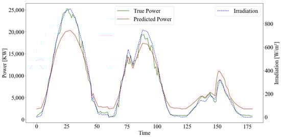 In recent years, with the depletion of traditional fossil energy and with increasingly serious global environmental problems [1], countries all over the world have paid more and more attention to the development of renewable energy [2]. It is a general trend to replace traditional fossil energy with renewable energy such as wind and solar energy [3,4]. With the advantages of safety, high efficiency, and green economic advantages, solar energy is widely used around the world [5]. According to the statistics of the International Energy Agency (IEA) as of 15 December 2023, the total global photovoltaic installed capacity in 2023 has reached 1552.3 GW, and it is predicted to reach 1954.6 GW in 2024, with 402.3 GW of newly installed capacity. By 2030, to achieve net zero emissions, the photovoltaic installed capacity needs to reach 6101 GW, that is, about 682.97 GW per year, and the average annual growth rate needs to reach 14.16%. However, due to the influence of meteorological factors such as solar radiation and temperature, photovoltaic power generation has a certain volatility and randomness [6,7]. When a high proportion of photovoltaic power generation is connected to the grid, the complexity of power grid’s dispatching is increased to a certain extent, which will have a certain impact on the stable operation of the power system [8]. Therefore, accurate photovoltaic power prediction is of great significance to the development of an electric power system with renewable energy as its main body [9].