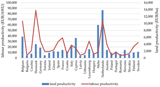 Land and labour productivity in the agriculture of EU Member States from 2010 to 2021. Source: authors’ elaboration.