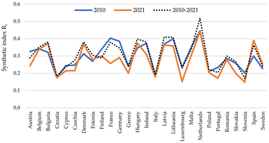 Synthetic measures of the significance of agriculture as a source for renewable energy production in EU Member States from 2010 to 2021.
