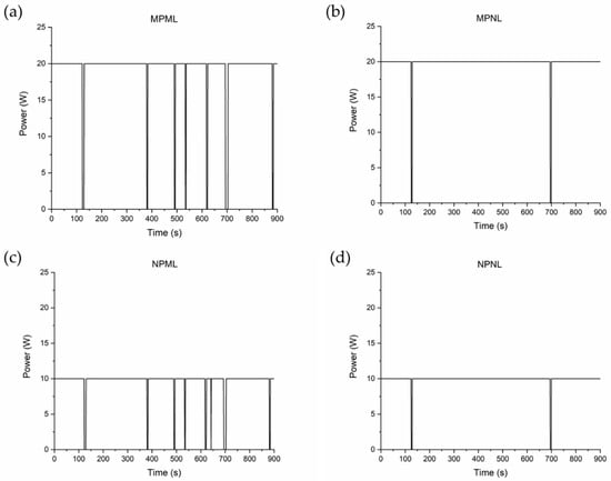 Individual PEMFC power cycles of different operating powers. (a) MPML; (b) MPNL; (c) NPML; (d) NPNL.