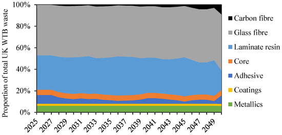 Projected composition of UK WTB waste streams up to 2050 used in mixed WTB feedstocks scenarios.