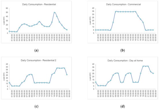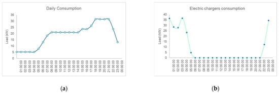To do so, it will be used as the hypothesis that energy communities and electric mobility can be a win–win solution at an economic and environmental level. For that, some consideration must be made regarding the energy community and the electric charger’s model. It will be considered a residential community-type load curve, where the peak occurs between 6 p.m. and 9 p.m., and electric vehicles charge between 10 p.m. and 7 a.m. The energy community will only include photovoltaic energy, and the electric chargers will be assumed to be wallboxes.