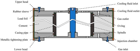 Schematic of a vertical cross-sectional view of the casing–cement composite ready to be rigged up in the autoclave [51].
