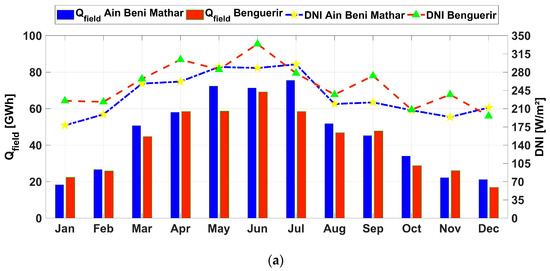 The thermal outputs across the year in MWhth: (a) Ain Beni Mathar, (b) Benguerir.
