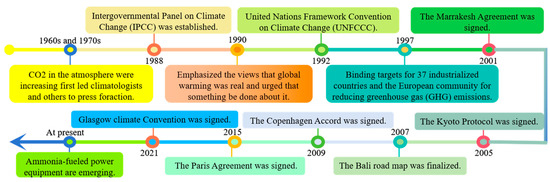 The issue of global warming, which is brought about by the excessive release of greenhouse gases, has become a pressing concern that humans must urgently address [1,2,3]. Reducing emissions is the primary means of achieving the “two-carbon” goals [4]. Controlling global warming at 1.5 °C instead of 2 °C would bring significant advantages to humanity, encompassing aspects such as sea level rise, meteorological disaster, water scarcity, permafrost thawing, and more [5]. The largest obstacle we face in our generation is climate change. To meet the temperature criterion of 1.5 °C laid down by the Intergovernmental Panel on Climate Change and reduce global greenhouse gas emissions, it is imperative to identify technically reliable, commercially significant, environmentally friendly, and safe solutions [6,7]. The global response to greenhouse gases is shown in Figure 1.