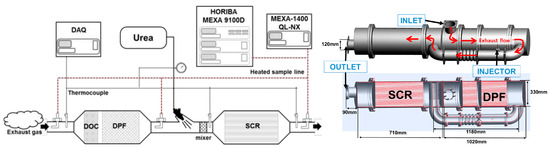 To enhance the mixing ratio of vehicle urea and exhaust gas and improve volume utilization, the influence of mixing chambers and swirl mixers with NOx conversion was compared [111]. This comparison found that the NOx conversion efficiency can be increased by 61.3%, 76.2%, and 86.3%, respectively, by using the mixing chamber, the swirl mixer, and a combination of the two [111]. Ko et al. [112] observed that NH3 slip is inevitable in the process of NOx conversion, especially during engine start, where it is challenging to eliminate NH3 slip. However, Kuta et al. [92] discovered that NH3 slip provides the possibility to re-activate the SCR system and improve its effectiveness under different engine operating conditions. The key factor affecting effectiveness is temperature, which can be easily controlled by modifying the structure of the exhaust device. SCR systems as shown in Figure 14.