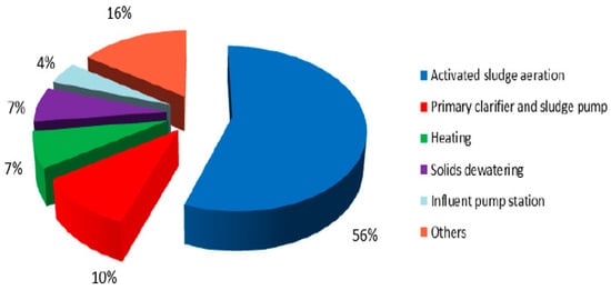 Breakdown of % WWTP energy usage by process. Reproduced with permission from Greg et al. (2014), ©SDEWES, 2014 (open-access conference proceeding) [18].