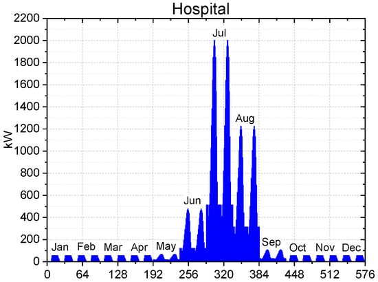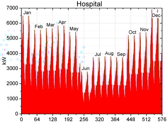 Hospital annual electricity demand profile (two 24 h typical days per month).