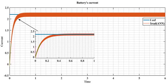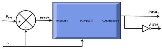 In the control design of the DC to DC (second stage) converter, the outer loop creates the reference battery current (Ibat), which is then compared to the real value and regulated by the ANN controller, as shown in Figure 9, illustrating the main role of the switch between the buck and boost modes.