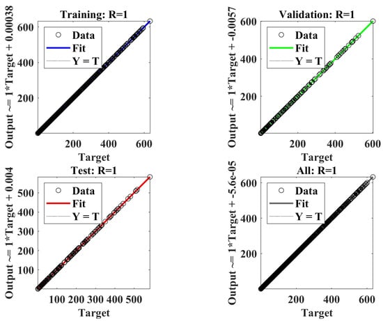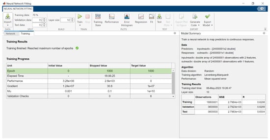 Figure 11 and Figure 12 present extensive information about the proposed ANN model. We utilized the Levenberg–Marquardt algorithm for training, which lasted about 18 h, to perfect the model for reactive power. Additionally, we employed the same method to develop models for active power, link, and direct current.