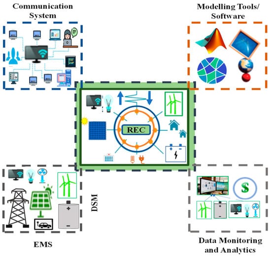 - Technological components like EMS, DSM, energy monitoring, analytics, and communication systems are crucial for RECs. Moreover, precise system modeling is essential for effective planning and management. They enable operators and participants to analyze parameters, enhance systems, and plan effectively. Researchers and stakeholders should focus on these tools for planning, design, operation, and maintenance.