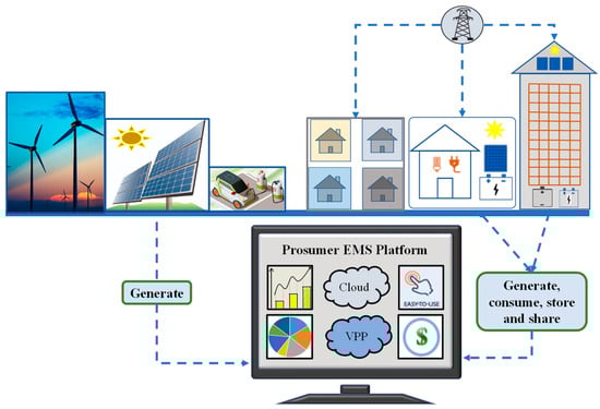 | Type-02 [132] | RES, ESS, Grid-connected operation mode, electricity consumption, sizing of DRESs, economic analysis, Energy transition | EC with several households and DRESs (solar PV and ESS), Grid | The EC considered in this architecture aims to meet the load demand by using RESs, which contribute to the energy transition. |