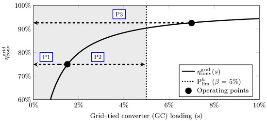 where (16) ensures load coverage and (17) and (18) the PECs’ power constraints. Figure 7 shows the efficiency characteristics for grid import using the PLS and optimisation (both for = 15%) and the reference case with a single-converter operation.