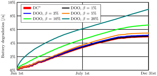 Figure 9 shows the modelled battery degradation for DC∗ and battery DOO.