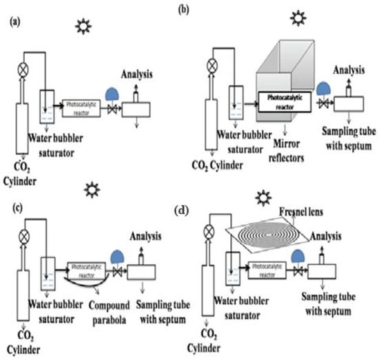 - Francis, A.; Kumar, H.; Sudhakar, K.; Tahir, M. A review on recent developments in solar photoreactors for carbon dioxide conversion to fuels. J. CO2 Util. 2021, 47, 101515. [Google Scholar] [CrossRef]