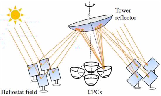 - Xu, H.; Xu, C.; Li, S.; Zhang, Z.; Liu, Y.; Xin, T.; Yang, Y. A beam-down solar concentrator with a fixed focus—Design and performance analysis. Sol. Energy 2022, 241, 428–436. [Google Scholar] [CrossRef]