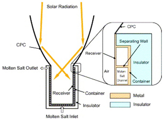 - Hasuike, H.; Yoshizawa, Y.; Suzuki, A.; Tamaura, Y. Study on design of molten salt solar receivers for beam-down solar concentrator. Sol. Energy 2006, 80, 1255–1262. [Google Scholar] [CrossRef]
