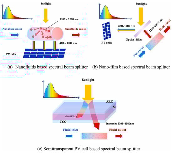 - Hong, W.; Li, B.; Li, H.; Niu, X.; Li, Y.; Lan, J. Recent progress in thermal energy recovery from the decoupled photovoltaic/thermal system equipped with spectral splitters. Renew. Sustain. Energy Rev. 2022, 167, 112824. [Google Scholar] [CrossRef]