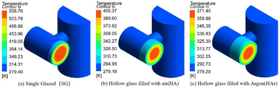The temperature contour of the pan–tilt inner basin with different glass structure types.