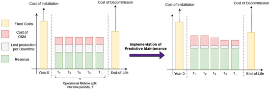Assumed cost–benefits of predictive maintenance in the long term. The short-term perspective is for each separate time period T.