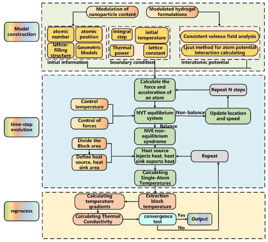 Flow diagram of MD simulation in the thermal conductivity analysis of composite hydrogel.
