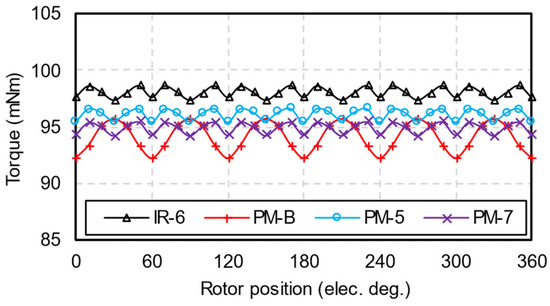 Rated torque characteristics of HCMs with different methods of torque ripple reduction.