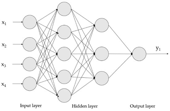 An artificial neural network (ANN) is an algorithm designed for parallel information processing, constructed by emulating the functional characteristics of biological neural networks [13]. Its architectural layout is illustrated in Figure 3. The ANN algorithm tackles intricate pattern recognition and nonlinear challenges by establishing a multilayer network architecture comprising an input layer, a hidden layer, and an output layer. Each layer comprises numerous neurons, interconnected via weight and infusing nonlinear properties via activation functions. Throughout the training process, the ANN recalibrates the weight utilizing the backpropagation algorithm to minimize the discrepancy between the anticipated output and the actual output. The ANN can construct a high-dimensional nonlinear relationship between variables and optimization objectives, thereby compensating for the limitations of traditional surrogate models in modeling dimensions and precision. Nevertheless, the model exhibits poor interpretability and generalization, concurrently necessitating a substantial number of samples. The sample size of straightforward problems can reach hundreds or even thousands.