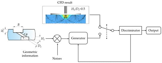 Convolutional neural network (CNN) is the first convolutional network widely used in the field of flow heat transfer in recent years, which can effectively predict two-dimensional and even three-dimensional physical fields. CNN uses convolutional layers to extract local features from input data. These convolutional layers slide small filters (kernels) over the input data, calculating the weighted sum of local regions. This convolution operation effectively captures the spatial hierarchical structure of the data while reducing the number of parameters in the fully connected layer, thereby reducing the risk of overfitting and improving the computational efficiency of the model [14]. Recognizing that the maximum likelihood of 2D/3D physics is challenging to articulate, this complicates the formulation of the loss function of CNN models. The Generative Adversarial Network (GAN) [15] generates approximate datasets through the iterative training of two distinct neural networks, namely the generator and discriminator. The objective of the generator is to generate an approximation data instance, and the classifier is utilized to distinguish between the approximation data set and the authentic data set. The two networks are persistently adversarial during the training phase, thereby promoting the enhancement of the data quality generated by the generator. In practical applications, numerous problems in turbine cooling are problems of physical field generation under specified conditions, such as film pore cooling efficiency, blowing ratio, etc. For such generation problems with physical implications, the Conditional Generative Adversarial Network (CGAN) is frequently employed for model construction, and its structural diagram is illustrated in Figure 4. Although convolutional networks exhibit remarkable advantages in acquiring high-dimensional information distribution, lack of versatility is an inevitable drawback at present. After training a specific structure with convolutional networks, it cannot be applied to other analogous problems with regional alterations.