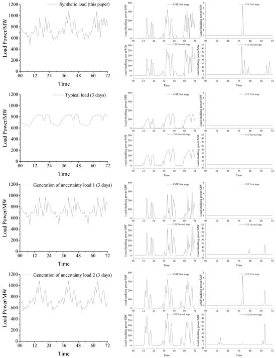 In order to show the feasibility of the method, different 3-day loads are used with the results obtained through the method of this paper, as shown in Figure 11 and Table 2. Where the Figure 11a represent the adopted loads and the Figure 11b represent the output load reduction results. The adopted loads include the typical loads used in Figure 5 with the uncertainty loads. Table 2 demonstrates the load reduction for Class II loads for different load forms. This proves that the method is not limited by means of loads and effectively reduces the reduction of more important loads.
