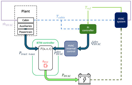 - The IETM regulates the actual HVAC power supplied by the battery around the theoretically required HVAC power for maintaining the reference cabin temperature.