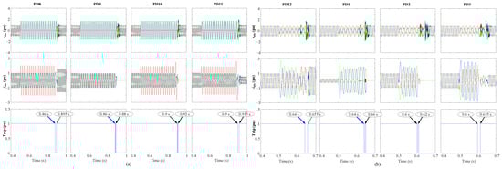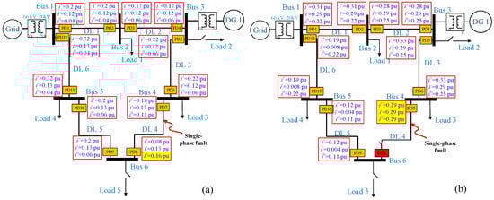 Examining the grid after disconnecting the PD with the highest zero-sequence current is the subsequent procedure. Upon disconnecting one end of the defective line, the three sequence currents at the other end will acquire an approximation of the identical value, as illustrated in Figure 6b. Thus, the faulty line in a single-phase fault can be isolated using these data.