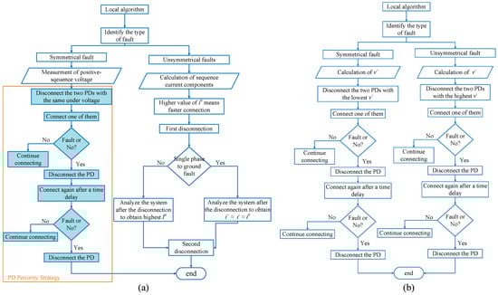 Flowchart of the LO proposed protection algorithm with (a) a grounded transformer, (b) an isolated transformer.
