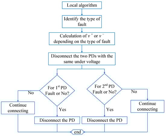 The under-voltage relay will be utilized to cut off one end of the faulty line in the case of a three-phase fault. After the initial disconnection, the opposite end of the faulty line will be disconnected using the same under-voltage criterion. Two ends of lines can achieve the same voltage by employing the under-voltage relay, which implies two PDs might disconnect simultaneously. So, a new method called the recloser algorithm will disconnect the PD at the faulty line.