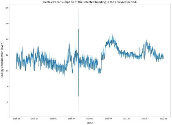 Experimental research was performed on the datasets obtained from energy consumption meters placed in the building complex, described in the previous section. The data were collected over a period of four years, from 1 January 2018 to 31 December 2021, in the form of time series. The dataset contains energy consumption readings (sampling) every 15 min. The dataset, therefore, contained over 140,174 reads.