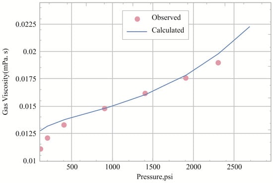 Diagram fitting for gas-phase viscosity in constant component expansion experiment (at 265 °F).