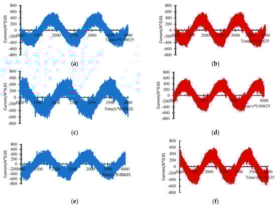 Figure 4 illustrates the phase current signals of the motor in the normal state and tooth wear state, respectively. According to this figure, it can be seen that there is no obvious difference between its time–domain analysis before and after the fault.