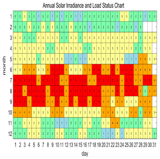Figure 9 shows the division of the annual solar intensity and load status into five scenarios.