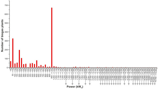 Based on the frequency distribution and the electricity production, the two most representative nominal power ranges of biogas plants have been defined as follows: