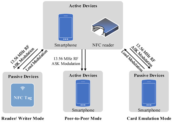 Basic Operation [43]—As demonstrated in Figure 8, NFC devices can operate in three different modes including the following: