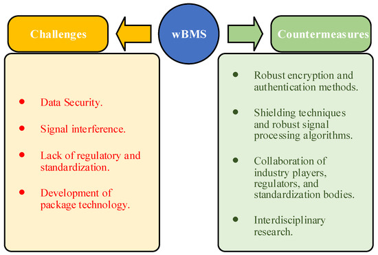 In conclusion, wBMSs represent a transformative step forward in battery management technology. Continued research and development are essential to overcome existing challenges and fully realize the potential of wBMSs, revolutionizing battery management. This paper offers detailed guidelines, summarizing existing developments, current challenges, and countermeasures for researchers focusing on future advancements. This paper aims to encourage the research community to intensify efforts in wBMS research, advancing its progress and broad adoption across various applications.