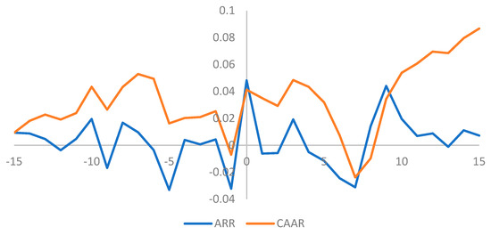 Daily trends of ARRt and CAARt in the event window [−15, 15].