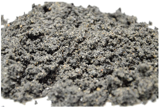 Figure 3. Mining waste from the Sobieski Mining Plant with grain sizes of 0 to 2 mm—macroscopic view [15].