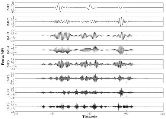 The VMD algorithm effectively reduces the phenomenon of modal aliasing after decomposition compared to algorithms such as EMD and CEEMD. The IMF obtained by decomposition is as follows: