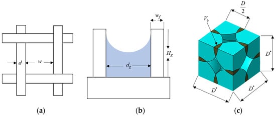 where d, N, w, and ε are wire diameter, mesh number, the separation distance of wires, and porosity, respectively. In Equation (16), the engineering key parameters of the screen mesh wick are the wire diameter (d) and separation distance of wires (w).