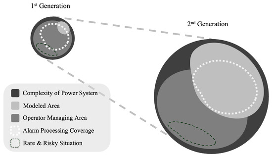 In response to these challenges, system developers have introduced operational aids like advanced monitoring systems to enhance the effective management of grids. However, this has led to an increase in the information the system operators must handle. Combined with the growing complexity of modern power systems [5,6], it has significantly heightened the stress on operators. Specifically, the burden on operators to manage the vast amount of data directly results from an environment that supports diverse system data acquisition and large-scale data processing [7]. To address these issues, developing sophisticated alarm processing techniques has become essential. These techniques help operators maintain situational awareness during alarm floods, that is, large-scale alarm events.